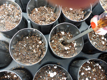 Once the koa seeds have soacked for 24 hours we plant them in "dibble tubes" or other nursery containers filled with a special soil mix containing fertilizers and rhizobia bacteria. Rhizobia bacteria are microorganisms that evolved with koa trees and form root nodules. The bacteria fix nitrogen from the air and make it available to the koa trees and to other plants surrounding the koa trees in the forest.