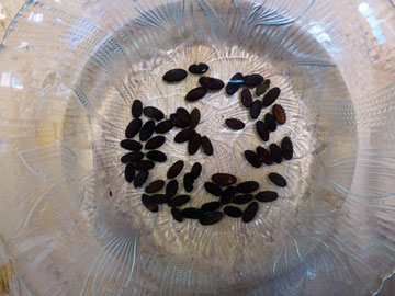 Here's a bowl of koa seeds that have soaked for 24 hours. Note how they have swollen nicely.