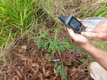 Next we take the GPS location of the tree. The GPS location goes on Adopt-A-Tree certificates, and into our database so we can find specific trees in the future.